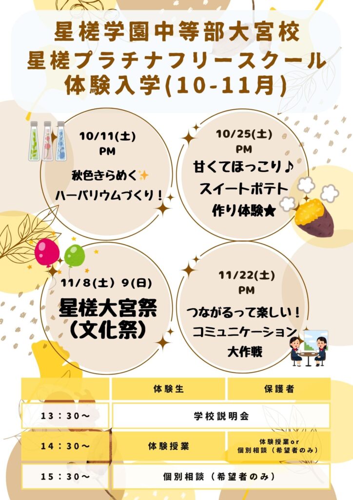10・11月の中等部・フリースクールの体験入学についてお知らせします。