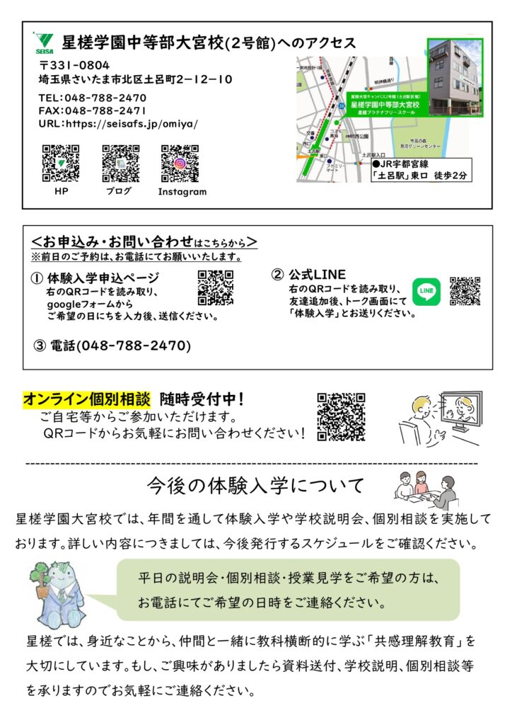 ☆星槎では、身近なことから、仲間と一緒に教科横断的に学ぶ「共感理解教育」を大切にしています。もし、ご興味がありましたら資料送付、学校説明、個別相談等を承りますのでお気軽にご連絡ください。